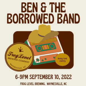 Enjoy BEN & THE BORROWED BAND on Saturday, September 10th at Frog Level Brewing’s outdoor patio in Downtown Waynesville, North Carolina. Performing from 6-9 pm at FLB’s beautiful outdoor patio, deck and green space alongside Richland Creek. We are pet and family friendly! See you there…