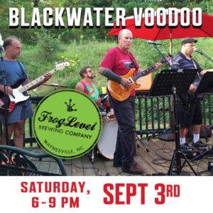 Enjoy BLACKWATER VOODOO on Saturday, September 3rd at Frog Level Brewing’s outdoor patio in Downtown Waynesville, North Carolina. Performing from 6-9 pm at FLB’s beautiful outdoor patio, deck and green space alongside Richland Creek. We are pet and family friendly! See you there…