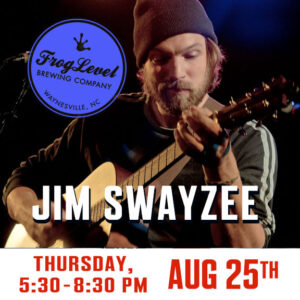 Enjoy JIM SWAYZEE on Thursday, August 25th at Frog Level Brewing’s outdoor patio in Downtown Waynesville, North Carolina. Performing from 5:30-8:30 pm at FLB’s beautiful outdoor patio, deck and green space alongside Richland Creek. We are pet and family friendly! See you there…
